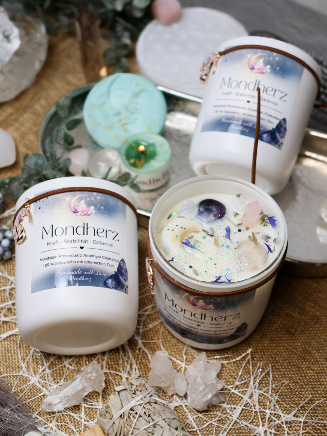Kristallkerze MONDHERZ für Kraft•Stabilität•Balance